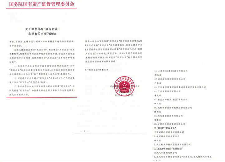 經(jīng)國務(wù)院國有企業(yè)改革領(lǐng)導(dǎo)小組批準(zhǔn),新筑股份進入“雙百企業(yè)”名單,成為“國企改革雙百行動”企業(yè)之一。
