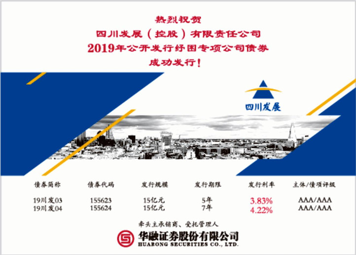 四川發(fā)展2019年紓困專項公司債券成功發(fā)行,規(guī)模共計30億元。