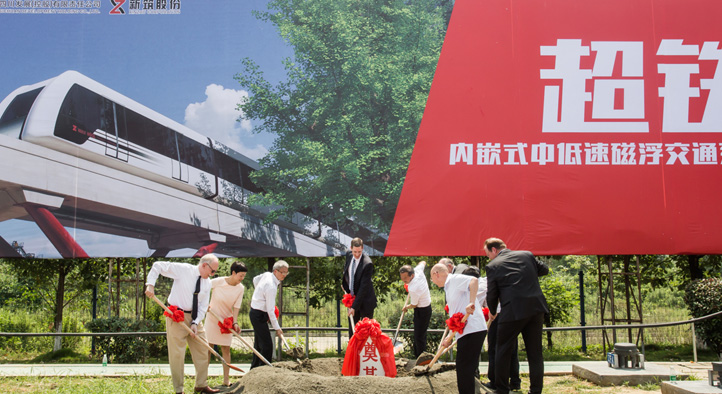 內(nèi)嵌式中低速磁浮軌道交通綜合試驗線項目舉行奠基儀式。該試驗線為國內(nèi)首條、全球第二條內(nèi)嵌式中低速磁浮系統(tǒng)。