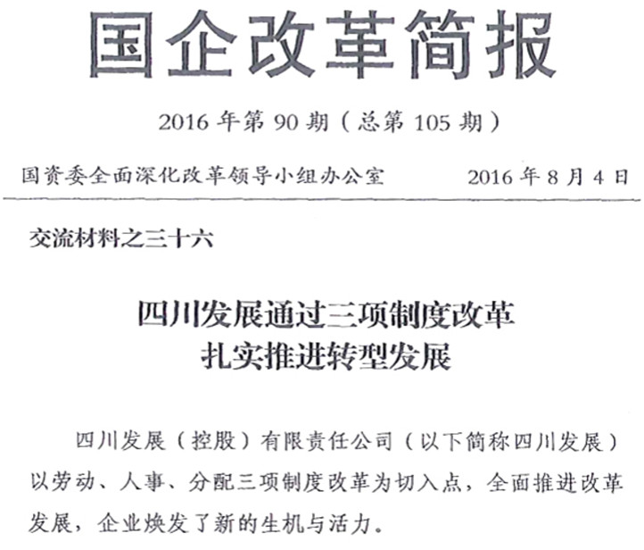 四川發(fā)展召開“深化改革推進大會”,推出集團化管控架構(gòu)及職能調(diào)整、投融資及資本運作、薪酬體系等的14項重點改革方案以及一系列改革舉措,開啟了四川發(fā)展新一輪全面深化改革新征程