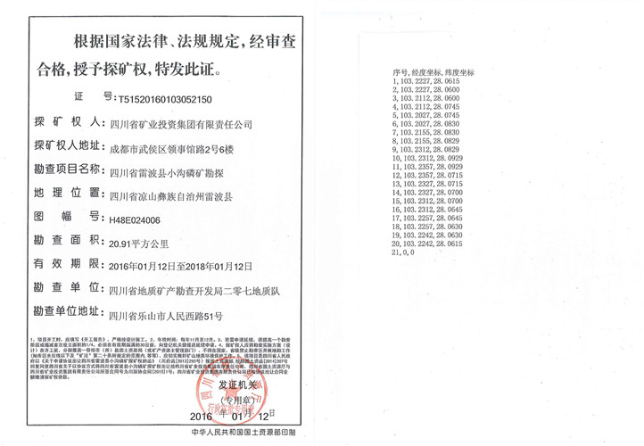 整合優(yōu)勢礦產(chǎn)資源工作取得實質(zhì)性突破。3月,組織礦投集團與雷波縣簽訂《小溝磷礦礦業(yè)權(quán)合作協(xié)議書》。